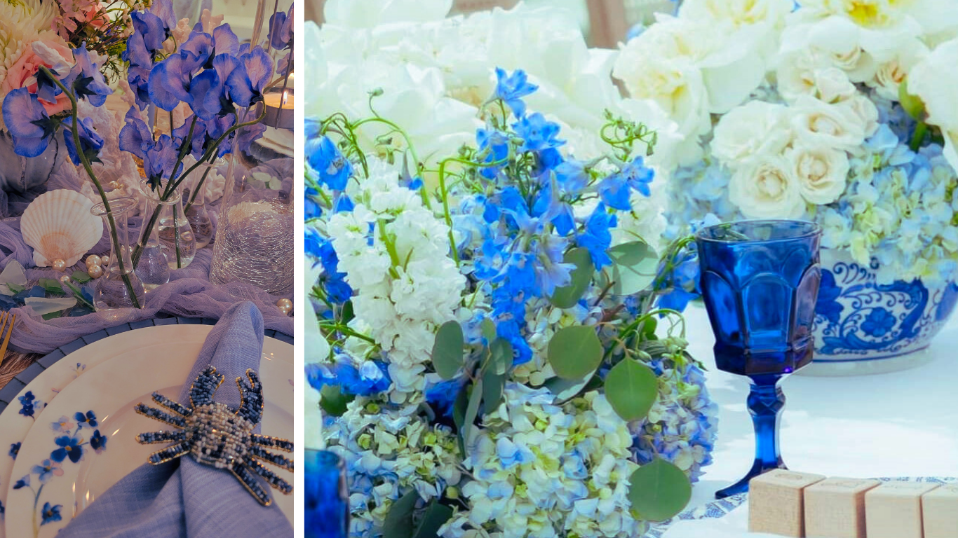 El color es la base de cualquier diseño floral costero. Siempre me inclino por tonos que reflejan la serenidad del mar y la amplitud del cielo.
